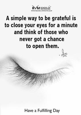 A simple way to be grateful is to close your eyes for a minute and think of those who never got a chance to open them.-RVM