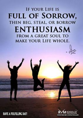 If your Life is full of Sorrow, then beg, steal, or borrow ENTHUSIASM from a great soul to make your Life whole.-RVM