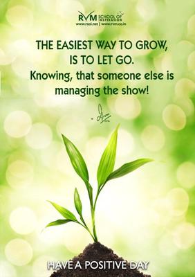 The easiest way to Grow, is to let Go. Knowing, that someone else is managing the show!-RVM