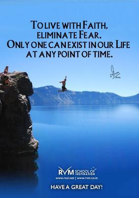 To live with Faith, eliminate Fear. Only one can exist in our Life at any point of time.-RVM