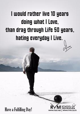 I would rather live 10 years doing what I Love, than drag through Life 50 years, hating every day I Live.-RVM