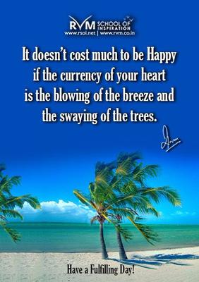 It doesn’t cost much to be Happy if the currency of your heart is the blowing of the breeze and the swaying of the trees. -RVM