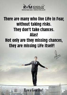 There are many who live Life in Fear, without taking risks. They don’t take chances. Alas! Not only are they missing chances, they are missing Life itself! -RVM