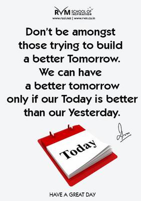 Don’t be amongst those trying to build a better Tomorrow. We can have a better tomorrow only if our Today is better than our Yesterday. -RVM