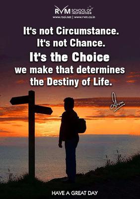 It's not Circumstance. It's not Chance. It's the Choice we make that determines the Destiny of Life. -RVM