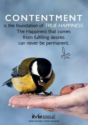 Contentment is the foundation of true Happiness. The Happiness that comes from fulfilling desires can never be permanent.-RVM