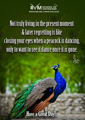 Not truly living in the present moment & later regretting is like closing your eyes when a peacock is dancing, only to want to see it dance once it is gone. -RVM