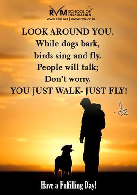 Look around you. While dogs bark, birds sing and fly. People will talk; Don’t worry. You just walk- Just Fly!-RVM