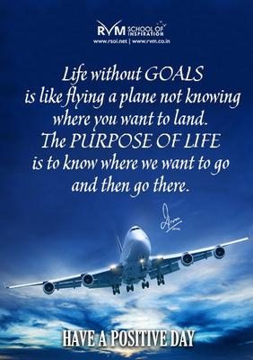 Life without GOALS is like flying a plane not knowing where you want to land. The PURPOSE OF LIFE is to know where we want to go and then go there.-RVM