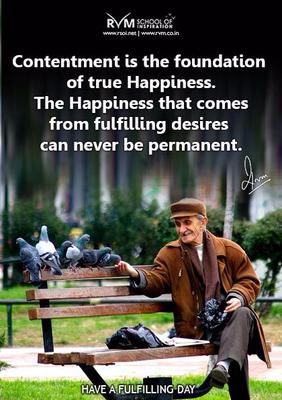 Contentment is the foundation of true Happiness. The Happiness that comes from fulfilling desires can never be permanent.-RVM