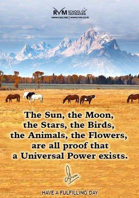 The Sun, the Moon, the Stars, the Birds, the Animals, the Flowers, are all proof that a Universal Power exists. -RVM
