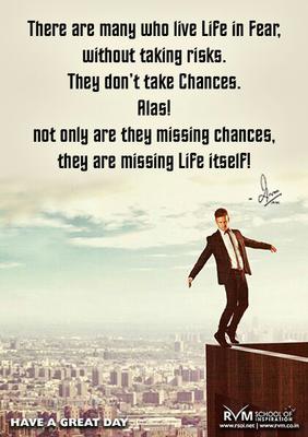 There are many who live Life in Fear, without taking risks. They don’t take Chances. Alas! Not only are they missing chances, they are missing Life itself! -RVM