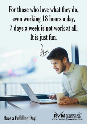 For those who love what they do, even working 18 hours a day, 7 days a week is not work at all. It is just fun.-RVM