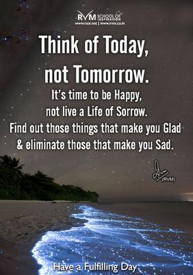 Think of Today, not Tomorrow. It’s time to be Happy, not live a Life of Sorrow. Find out those things that make you Glad & eliminate those that make you Sad. -RVM