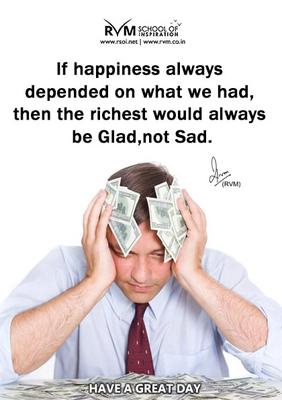 If happiness always depended on what we had, then the richest would always be Glad, not Sad.-RVM