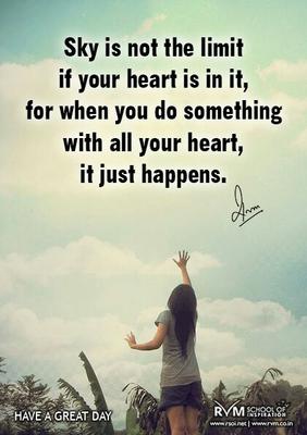 Sky is not the limit if your heart is in it, for when you do something with all your heart, it just happens.