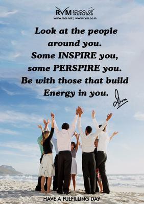 Look at the people around you. Some Inspire you, some Perspire you. Be with those that build Energy in you.