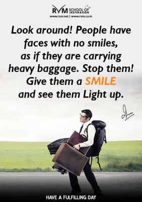 Look around! People have faces with no smiles, as if they are carrying heavy baggage. Stop them! Give them a SMILE and see them Light up.