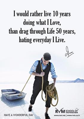 I would rather live 10 years doing what I Love, than drag through Life 50 years, hating everyday I Live.