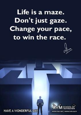 Life is a maze. Don't just gaze. Change your pace, to win the race.