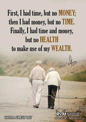 First, I had time, but no money; then I had money, but no time. Finally, I had time and money, but no health to make use of my wealth.