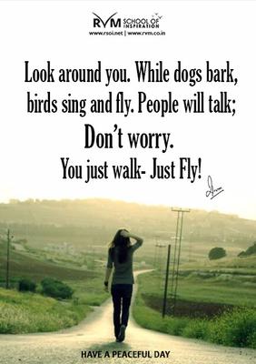 Look around you. While dogs bark, birds sing and fly. People will talk; Don’t worry. You just walk- Just Fly!