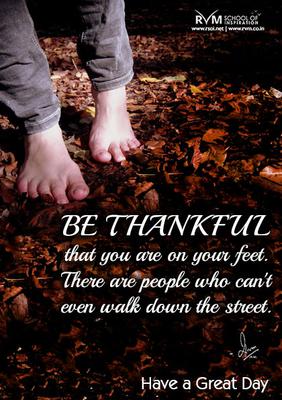 Be thankful that you are on your feet. There are people who can't even walk down the street.-RVM