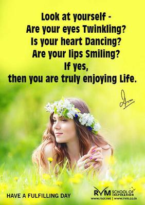 Look at yourself—Are your eyes Twinkling? Is your heart Dancing? Are your lips Smiling? If yes, then you are truly enjoying Life.