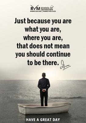Just because you are what you are, where you are, that does not mean you should continue to be there.