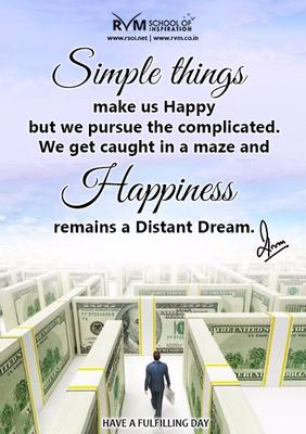 Simple things make us Happy but we pursue the complicated. We get caught in a maze and Happiness remains a Distant Dream.