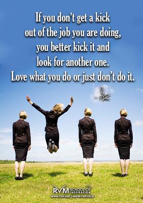 If you don't get a kick out of the job you are doing, you better kick it and look for another one. Love what you do or just don’t do it. -RVM