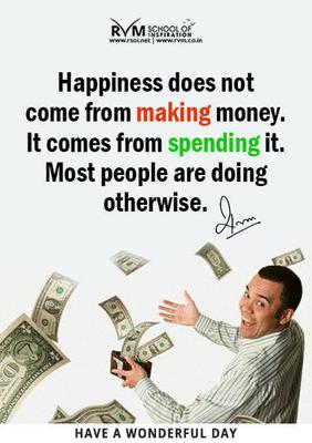 Happiness does not come from making money. It comes from spending it. Most people are doing otherwise.
