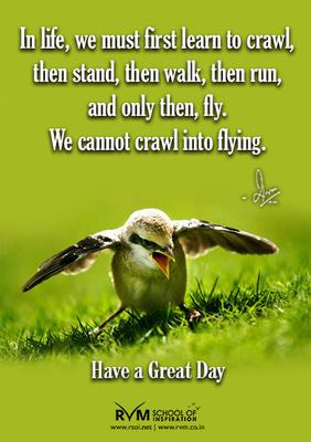 In life, we must first learn to crawl, then stand, then walk, then run, and only then, fly. We cannot crawl into flying.-RVM