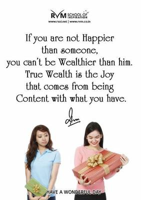 If you are not Happier than someone, you can’t be Wealthier than him. True Wealth is the Joy that comes from being Content with what you have.
