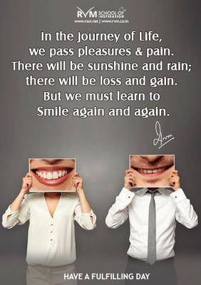 In the journey of life, we pass pleasures & pain. There will be sunshine and rain; there will be loss and gain. But we must learn to smile again and again.