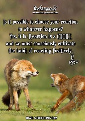 Is it possible to choose your reaction to whatever happens? Yes, it is. Reaction is a CHOICE and we must consciously cultivate the habit of reacting Positively.