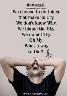 We choose to do things that make us Cry. We don't know Why? We blame the Sky. We do not Try. Oh My! What a way to Die!!!