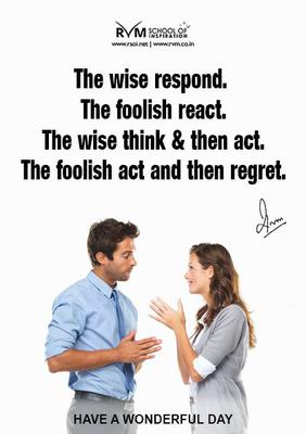 The wise respond. The foolish react. The wise think & then act. The foolish act and then regret.