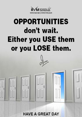 OPPORTUNITIES don’t wait. Either you USE them or you LOSE them.