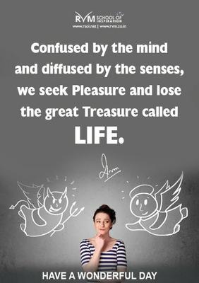 Confused by the mind and diffused by the senses, we seek Pleasure and lose the great Treasure called Life.