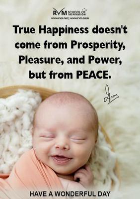 True Happiness doesn't come from Prosperity, Pleasure, and Power, but from PEACE.