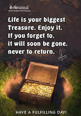 Life is your biggest Treasure. Enjoy it. If you forget to, it will soon be gone, never to return.