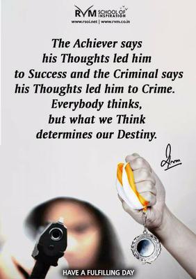 The Achiever says his Thoughts led him to Success and the Criminal says his Thoughts led him to Crime. Everybody thinks, but what we Think determines our Destiny.