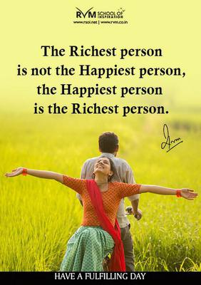 The Richest person is not the Happiest person, the Happiest person is the Richest person.