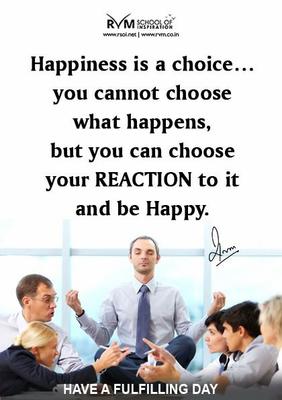 Happiness is a choice…you cannot choose what happens, but you can choose your reaction to it and be Happy.