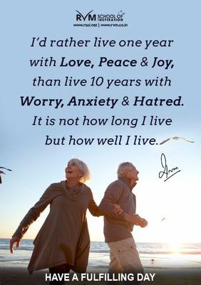 I’d rather live one year with Love, Peace & Joy, than live 10 years with Worry, Anxiety & Hatred. It is not how long I live but how well I live.