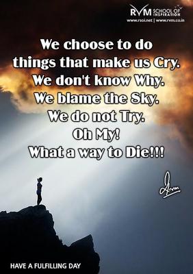 We choose to do things that make us Cry. We don't know Why? We blame the Sky. We do not Try. Oh My! What a way to Die!!!