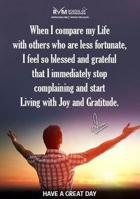 When I compare my Life with others who are less fortunate, I feel so blessed and grateful that I immediately stop complaining and start Living with Joy and Gratitude.