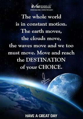 The whole world is in constant motion. The earth moves, the clouds move, the waves move and we too must move. Move and reach the destination of your choice.