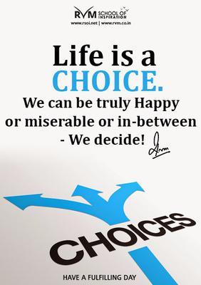 Life is a choice. We can be truly Happy or miserable or in-between - We decide!